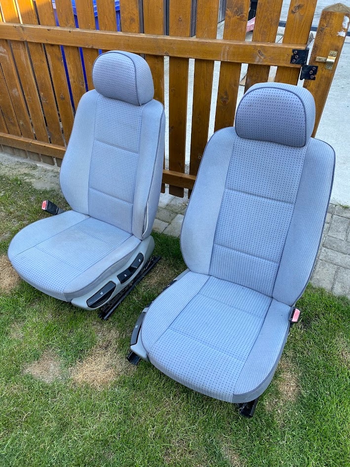 Prodám přední sedačky na BMW e46, řidičova lehce trhlá na boku viz foto