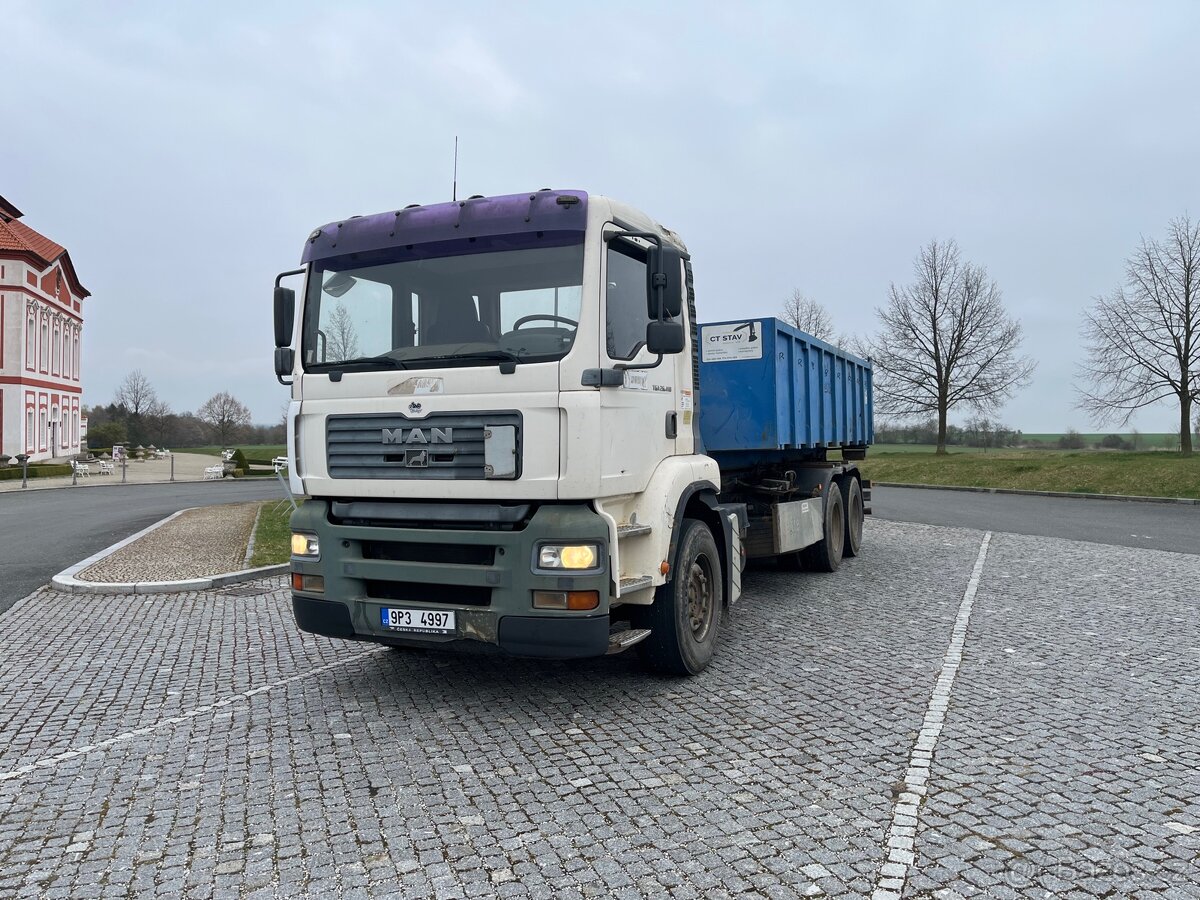Mam TGA - [6.3. 2026]Prodám Man TGA 28.430 kontejner s hr Palfinger 9000A, rv 2004, dobrý stav, platné STK