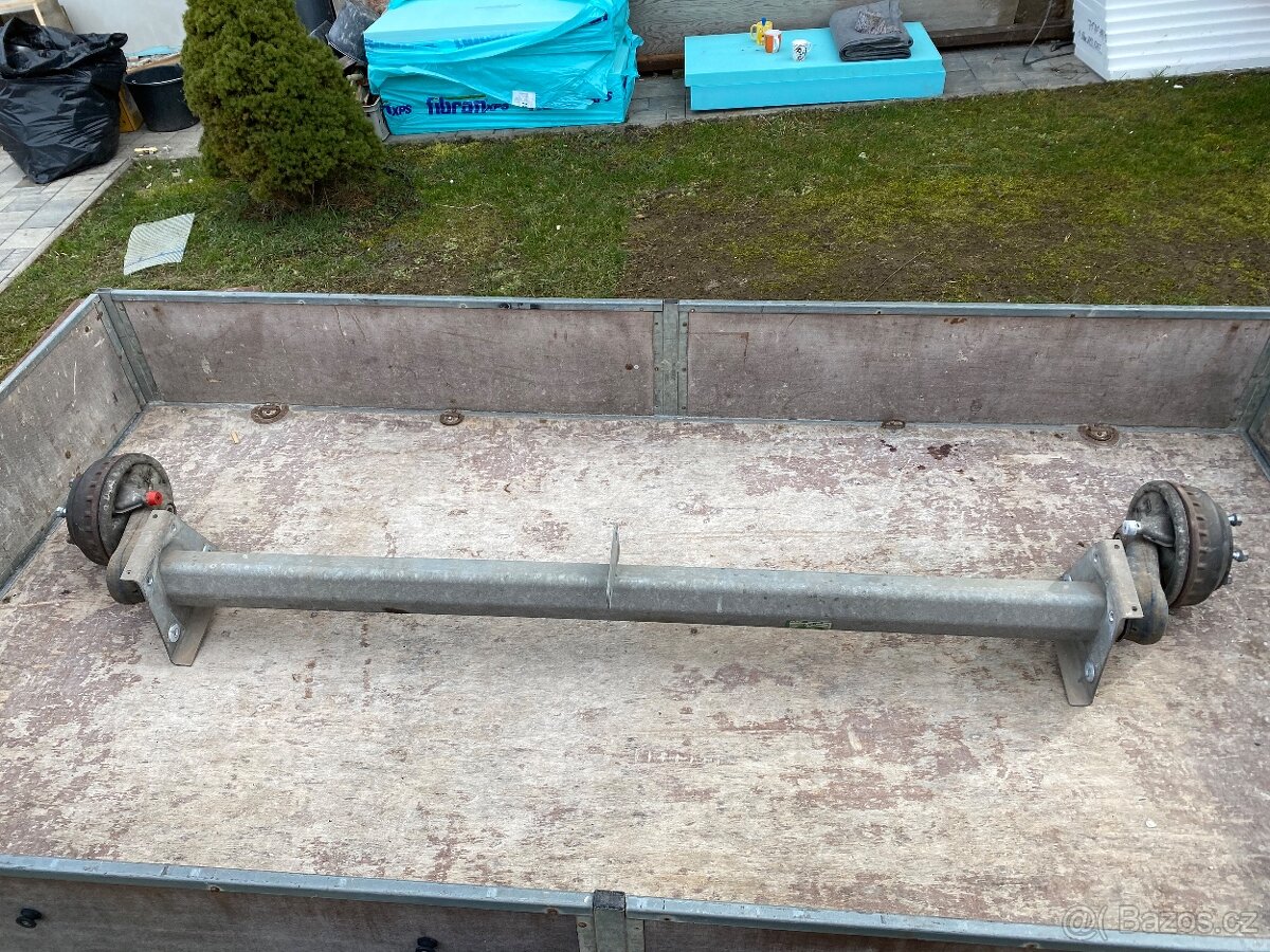 Bržděná náprava na vlek - [27.4. 2026]Prodám 2 kusy nikdy nepoužitých, pouze skladovaných náprav na vlek jak je na foto. Nosnost 800 kg Šířka k přisroubování 120 cm, celková šířka 180 cm. viz štítek. Odpružení torzními tyčemi. Ráfky barkas, moskvic, trabant. Rychlé jednání dohoda. Volejt ...