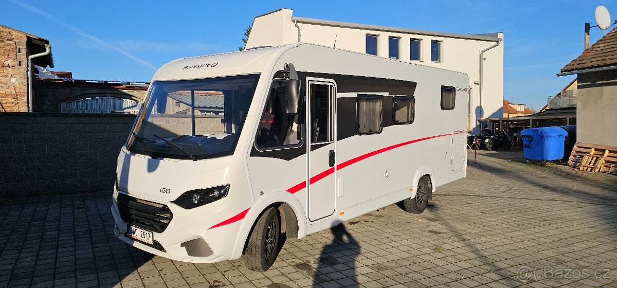 Výbava: aut. převodovka, 2x airbag, airbag řidiče, ABS, stabilizace podvozku (ESP), posilovač řízení, aut. klimatizace, nezávislé topení s čas. předehřívačem, tempomat, denní svícení, plní 'EURO VI', palubní počítač, navigační systém, parkovací kamera, nastavitelný volant, bluetooth, televize, el. přední okna, držák kol, el. zrcátka, centrál dálkový, centrální zamykání, výškově nastavitelná sedadla, výškově nastavitelné sedadlo řidiče, polohovací sedadla, senzor opotřebení brzdových destiček, aut. aktivace výstražných světlometů, zadní mlhovka, couvací světlo, otáčkoměr, USB, AUX, autorádio, venkovní teploměr, vyhřívaná zrcátka, autochladnička, klimatizovaná přihrádka, střešní okno, vnitřní teploměr, solární panel, sprcha, markýza, WC, přední otočná sedadla, sedadla výsuvná do uličky, výsuvné opěrky hlav, boiler, měnič 220V