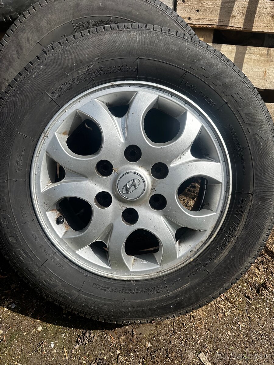 Prodám alu kola z Hyundai h1 6x139.7, na diskách obuté pěkné letní pneu 215/70R16 4x 6mm, při rychlém jednání domluva na ceně možná
