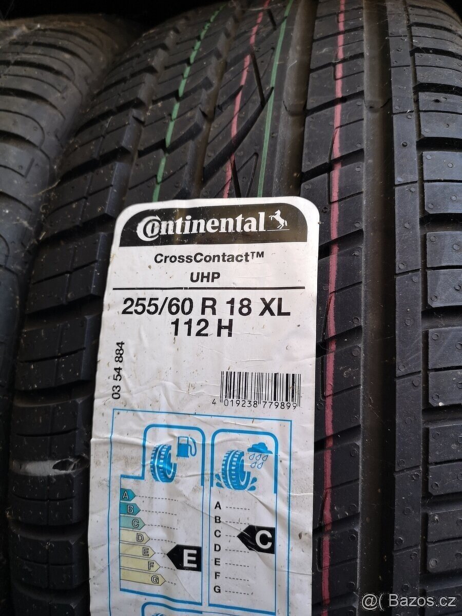 Prodám pneu 255 60 R18 112H XL DOT 4119 4kusy letní Continental Crosscontact UHP nejeté cena 2600kč kus , 255 60 r18 112V XL DOT 3518 2ks letní Continental Premiumcontact6 6 nejeté cena 2600kč kus , 255 60 r18 108H M+S DOT 0521 4ks celoroční Nexen Npriz RH7 zánovní vzorek 8,5-9mm cena 1600kč kus , Tel.607478485