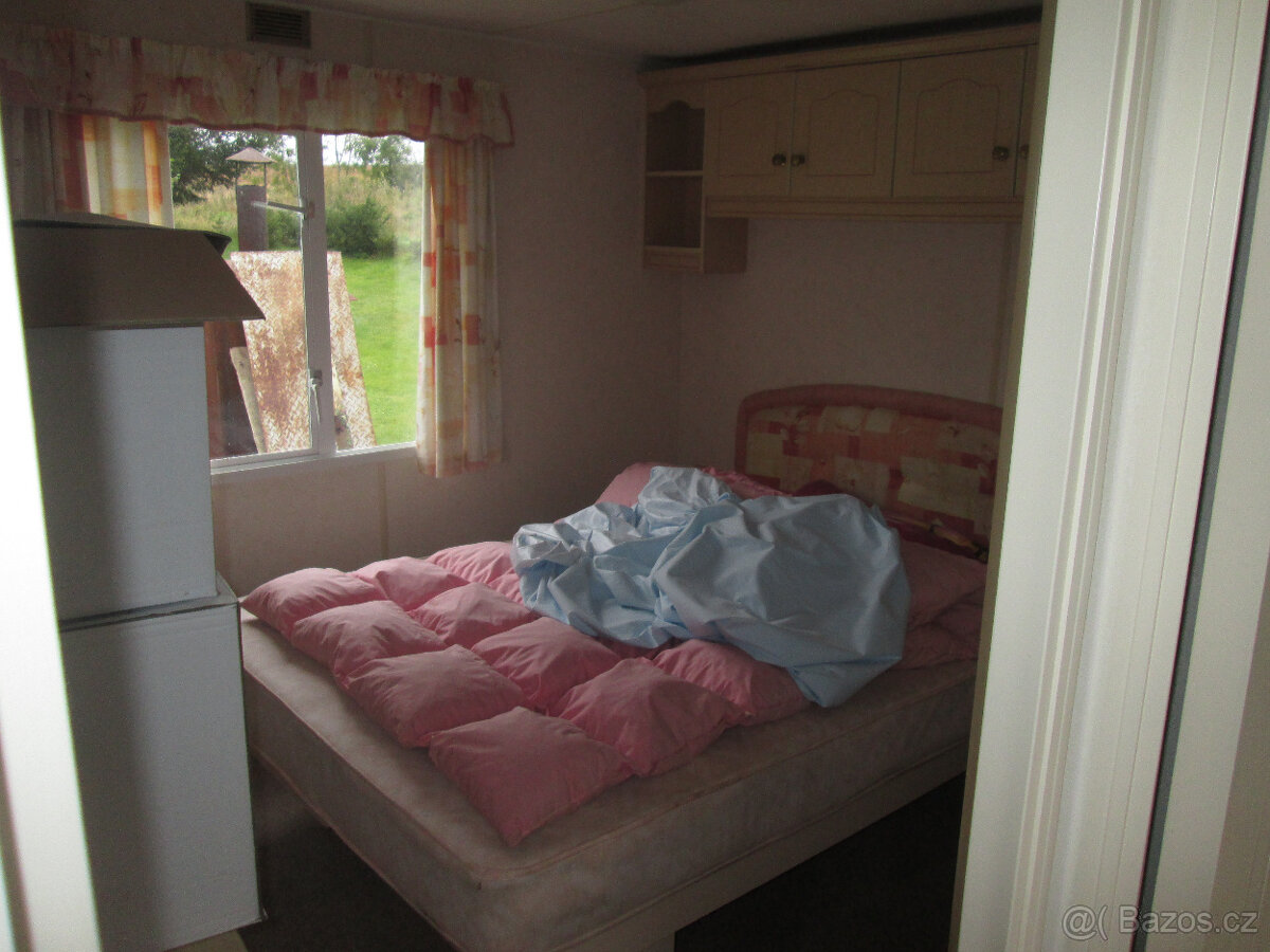 Mobilní dům - mobilheim - obytný karavan - Focus - [15.3. 2026]SKLAD v ŽEBRÁKU rozměr 3,1m x 8,5m, jedna uzavíratelná ložnice, koupelna se sprchovým koutem, umyvadlem a wc, plynové krbové topení, karma na ohřev vody, lednička, vařič, žaluzie, venkovní markýza, doprava do vzdálenosti 150km zdarma