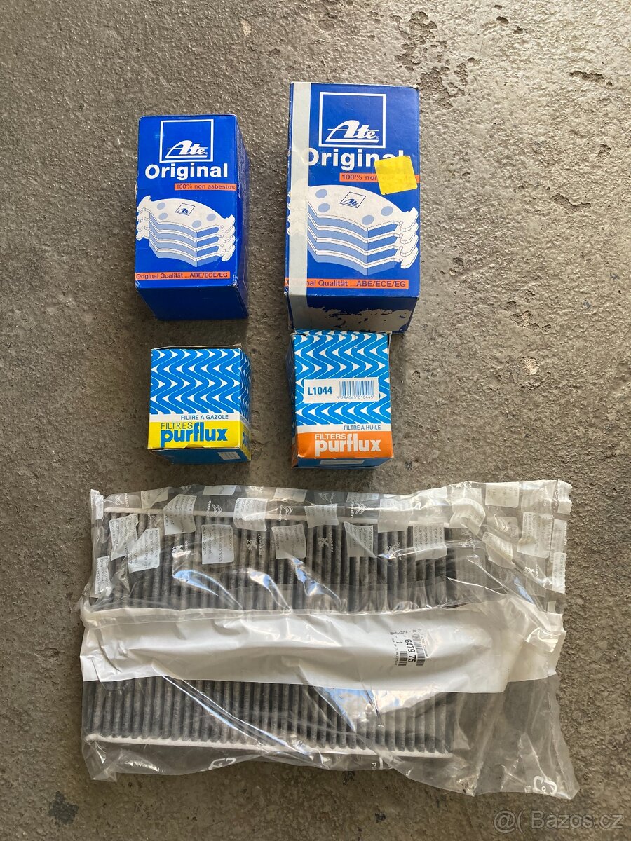 Prodám nové přední a zadní brzdové destičky, palivový filtr ,kabinový filtr , olejový filtr ,kolové šrouby, sněhové řetězy na 17ky kola .
