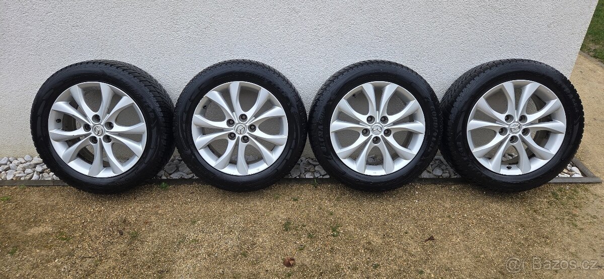 originál alu kola Mazda R18 + zimní pneu 215/45 R18 Vredeste - [19.4. 2026]Prodám kompletní sadu originálních alu kol Mazda včetně zimních pneumatik.