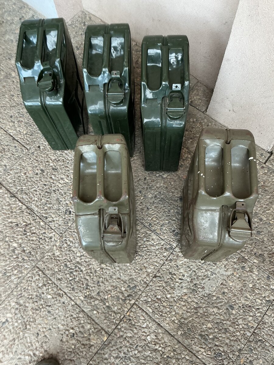 Soubor 8 kusů kanystrů - [19.4. 2026]Prodám těchto 8 kusů starých plechových kanystrů. 4x objem 20 litrů Sandrik (1973, 1985, 1988, 2002), 3x objem 10 litrů Sandrik (1978, 1982, ?) a 1x objem 20 litrů hliníkový ruské výroby. Všechny jsou v původním stavu, nečištěné. Preferuji prodej ja ...