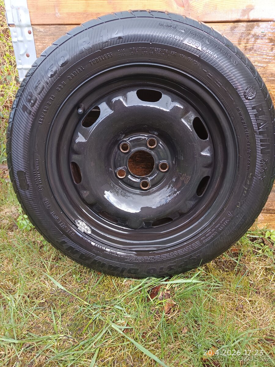Plechové disky s pneu R14 Kola 5x100 VW - [29.4. 2026]Prodám kola pasující na VW a jiné koncernové značky.