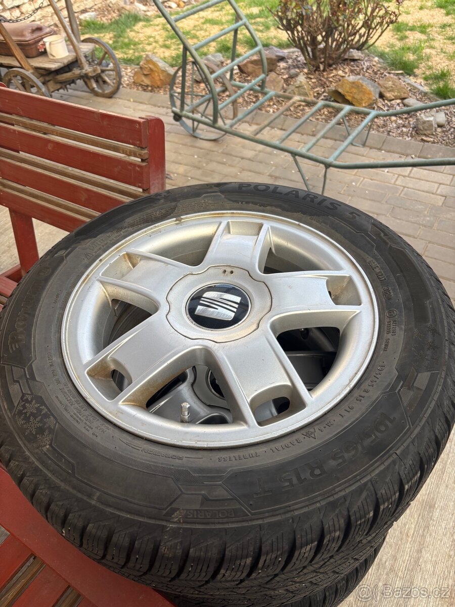 Prodám sadu ALU disků se zimními pneu 196/65 r15. Vzorek cca 6 mm. Jedno kolo bez středové krytky.