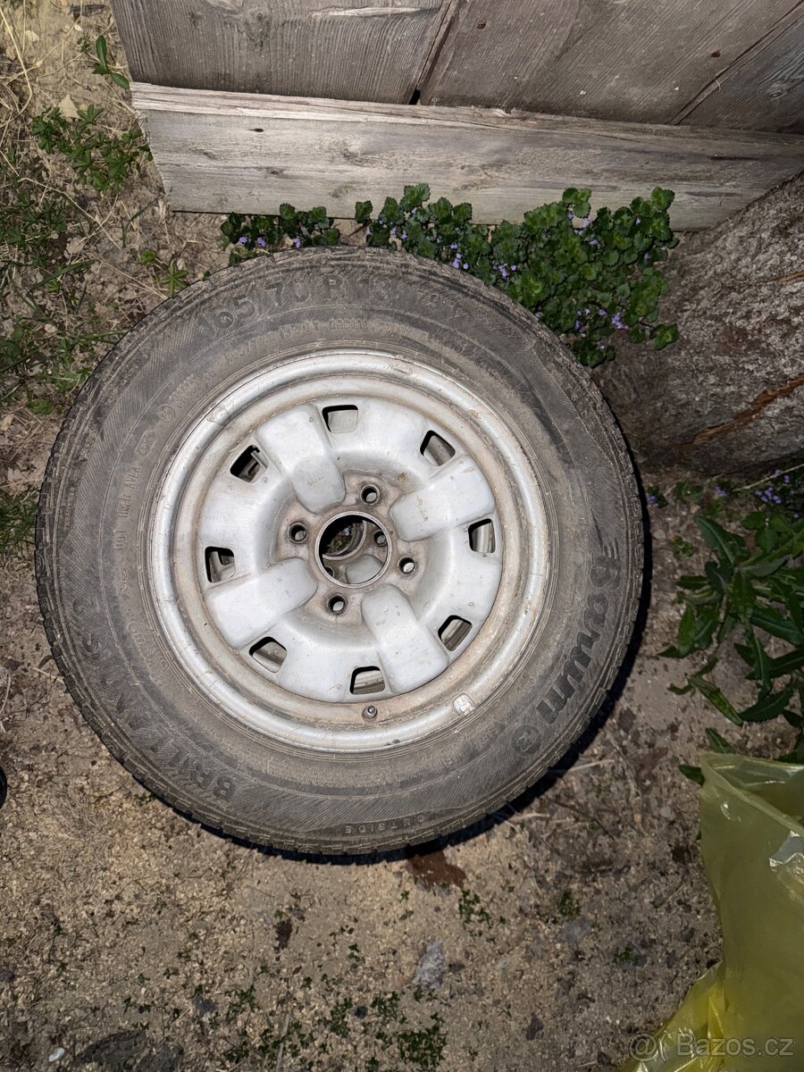 Kola pneu 165/70 R13 disky 4 1/2Jx13 ET38 4x100 - [23.4. 2026]Prodám dva kola na Felicii nebo přívěsný vozík. Cena za oba kola