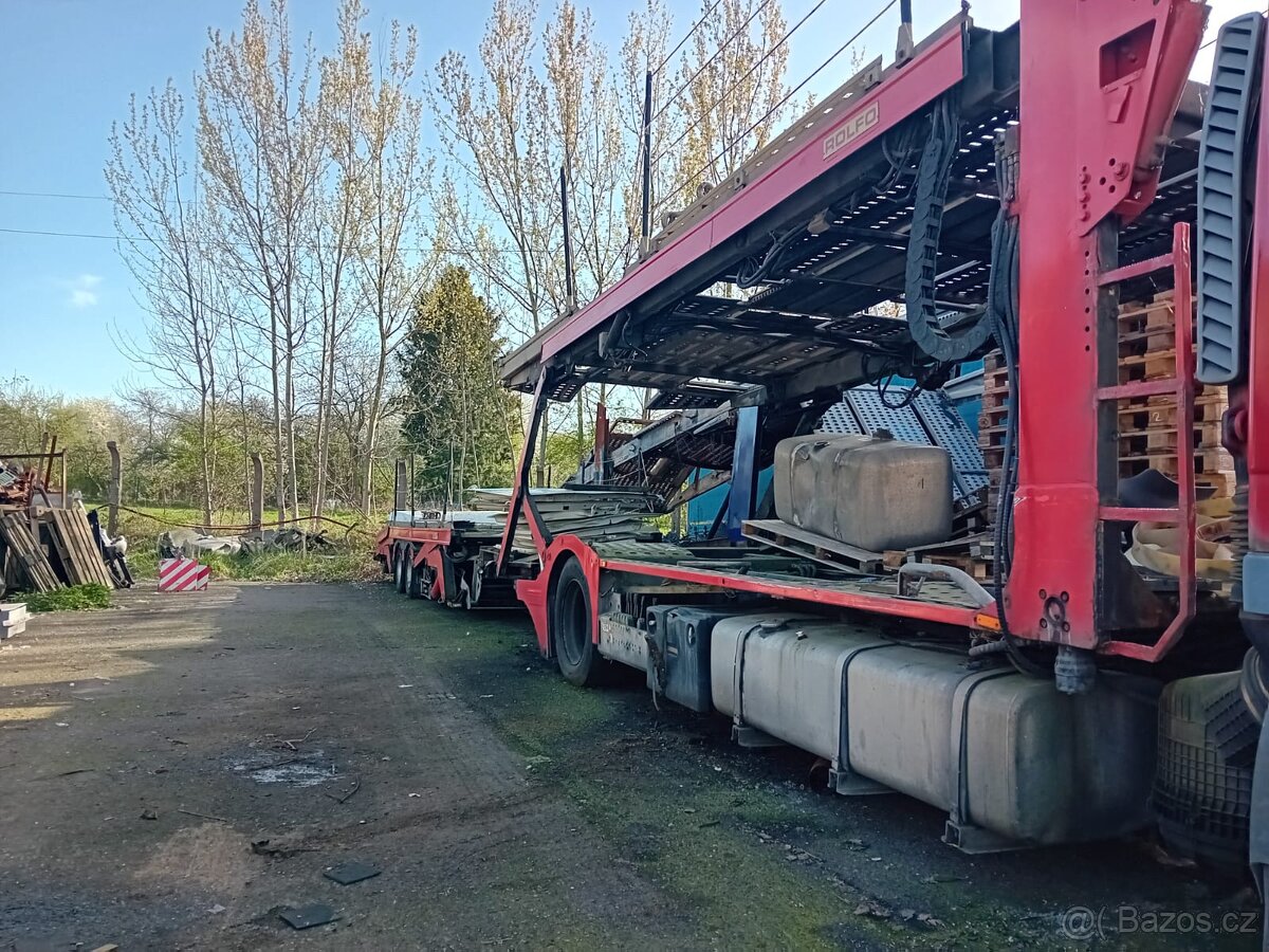 Výbava: negativ, vytahovací oj, propadla za kabinou a na konci tahače, na vleku dole 2x štaflování,