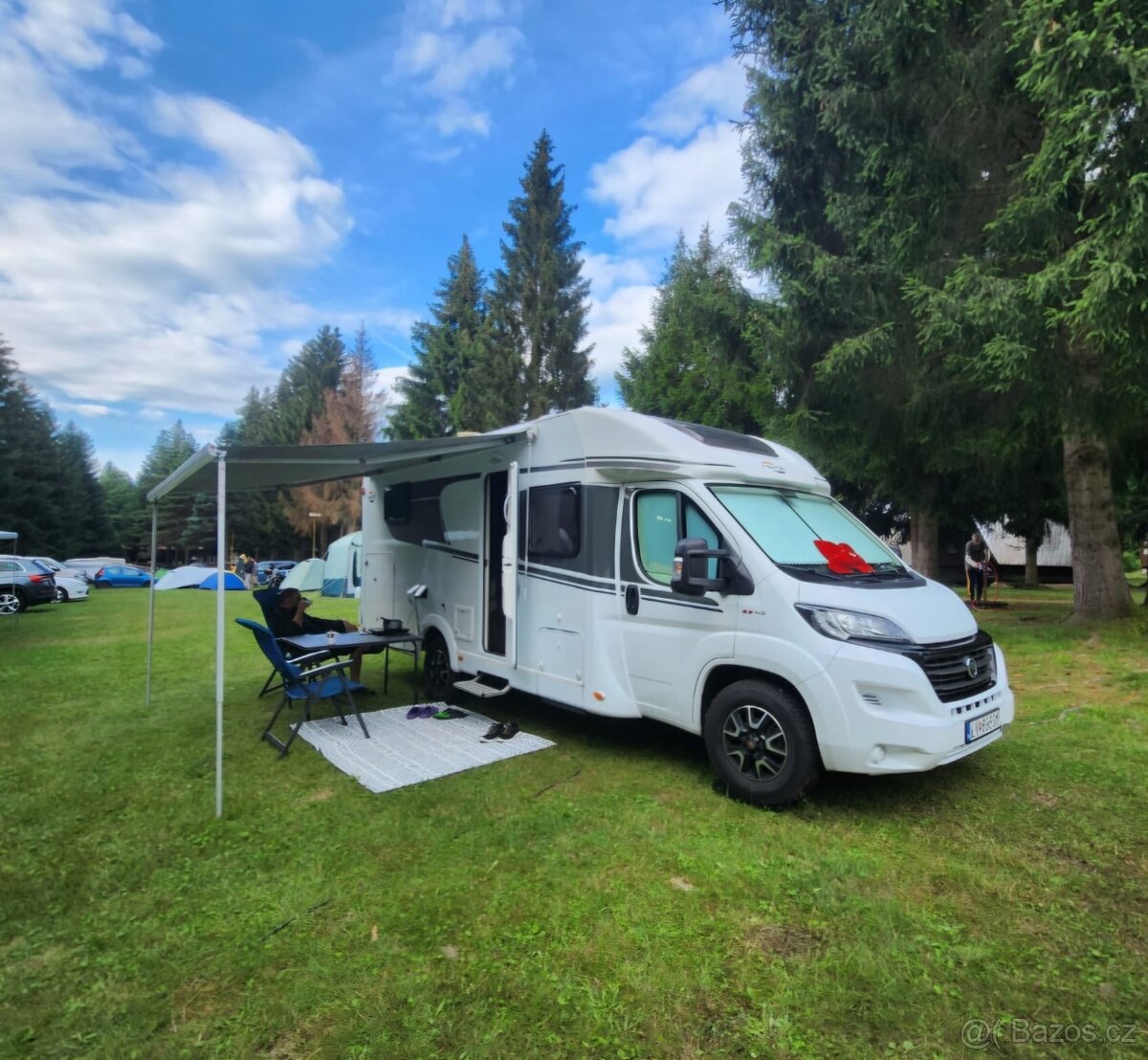 Veľkou výhodou je sklopné dvojlôžko nad sedením, ktoré nezavadzia do dverí. lebo to tak väčšinou býva pri modeloch napr T447 a iných polointegraloch ) so strešným oknom a sieťami po bokoch pre bezpečnosť detí + rebrík