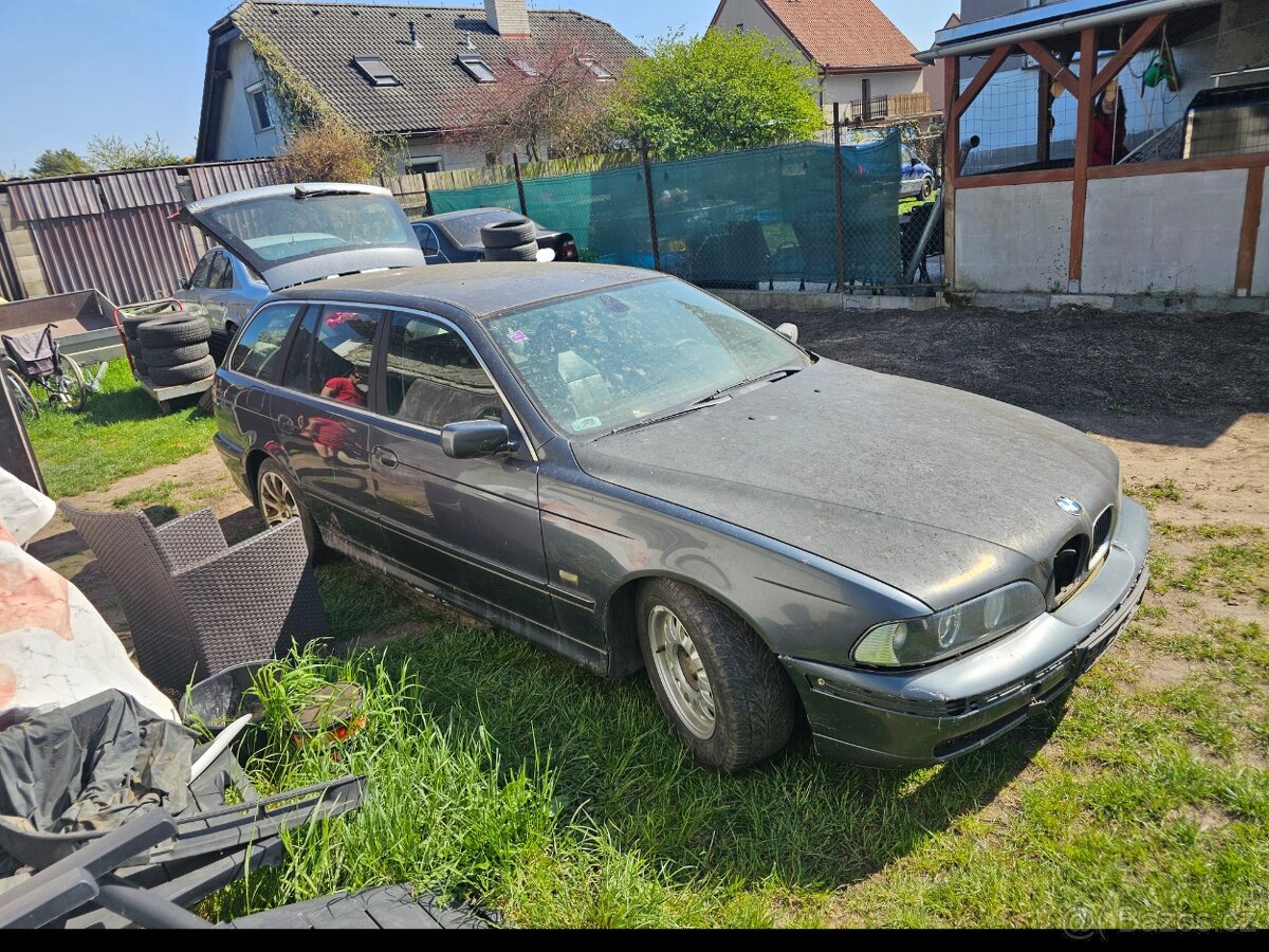 Prodám BMW e39 touring 525d. Auto na opravu nebo náhradní díly. Před lety koupeno na opravu, ale od té doby stojí na zahradě. K vozidlu možno přidat nový práh na vyvaření a nějaké díly. STK propadlá a SPZ v depozitu. Důvod prodeje je, že není čas to dát dohromady a zbytečně to tam stojí.