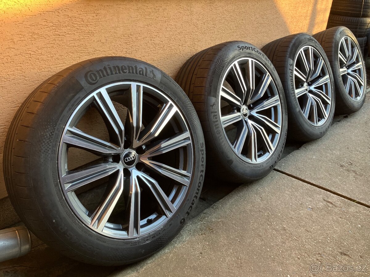 Prodám originální 21” alu kola z Audi Q8. Kola jsou v Top stavu! Na kolech jsou obuty letní pneumatiky Continental Sport Contact 6 o rozměru 285/45 R21 113Y se vzorkem 4mm a DOT0323. Kola pasují také na Audi SQ8.
