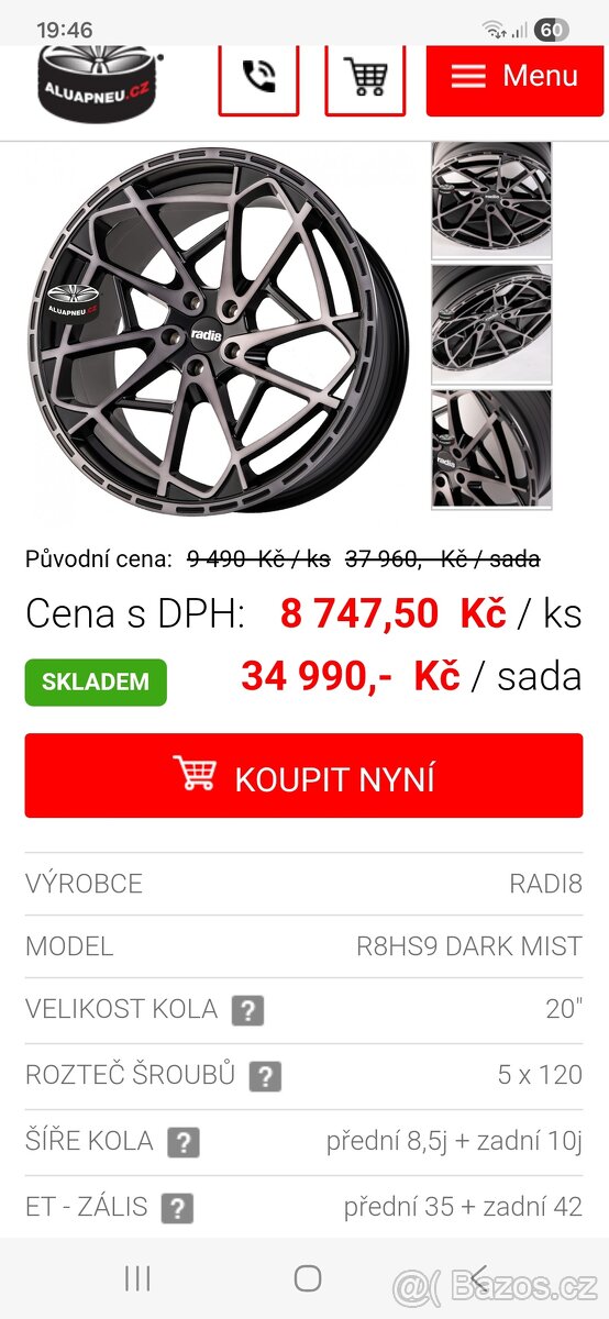 Rozměr: 2x 10J R20 ET38 a 2x 9J R20 ET40
