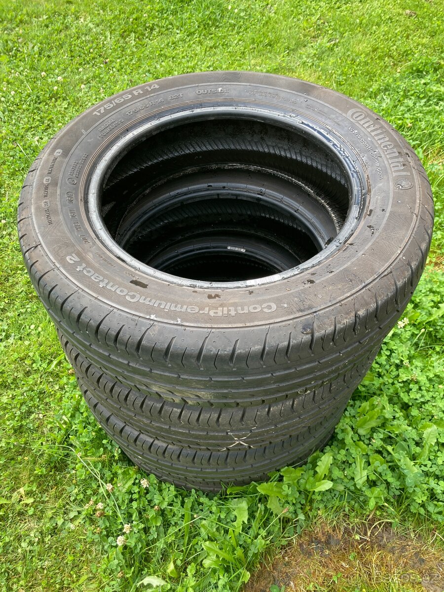Prodám 4x pneu Continental ContiPremiumContact2, 175/65/R14 82T, letní pneu, 2x5 mm, 2x6 mm