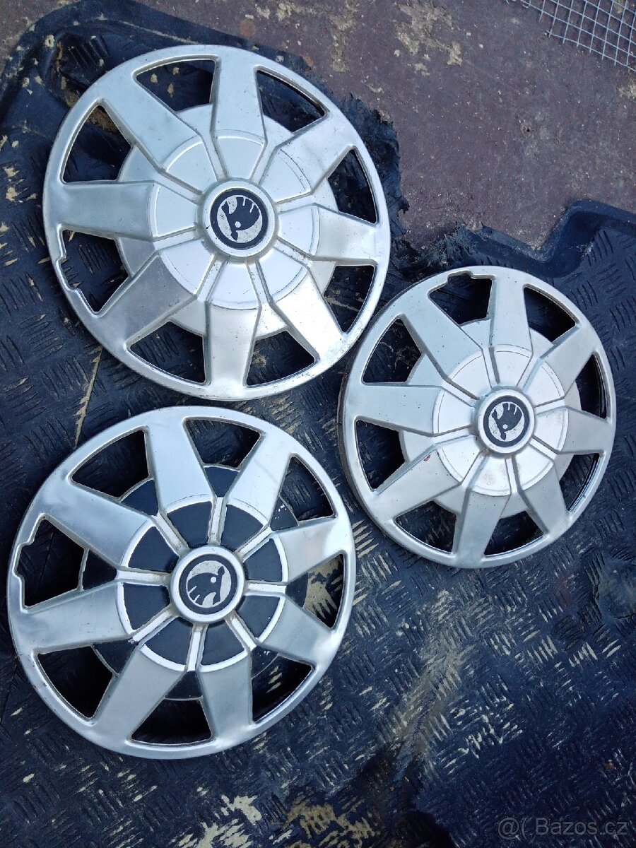 Prodám tyto 3 hliníkové poklice na veterána Škoda. Nálezový stav z garáže. Klidně i jednotlivě. Nabídněte cenu. Bližší informace na telefonu nebo emailu. Na SMS nereaguji. Zaslání je možné vzhledem ke špatným zkušenostem pouze po předchozí platbě na účet. Na dobírku nezasílám.