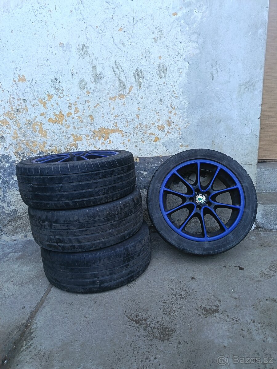 Disky jsou v dobrém stavu mírné poškrábání způsobeno bežným provozem. Pneu cca jedna sezona. Rozměry jsou 225/45R R 17 . Původní cena za nové disky byla 13 000 kč.