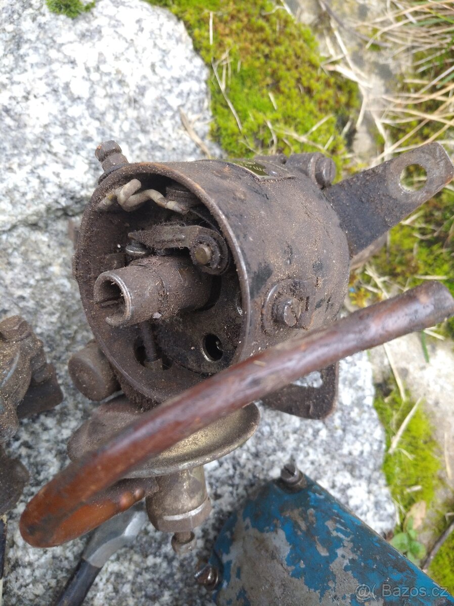 Starý motorek ke stěračům, rozdělovač, karburátor asi škoda tatra