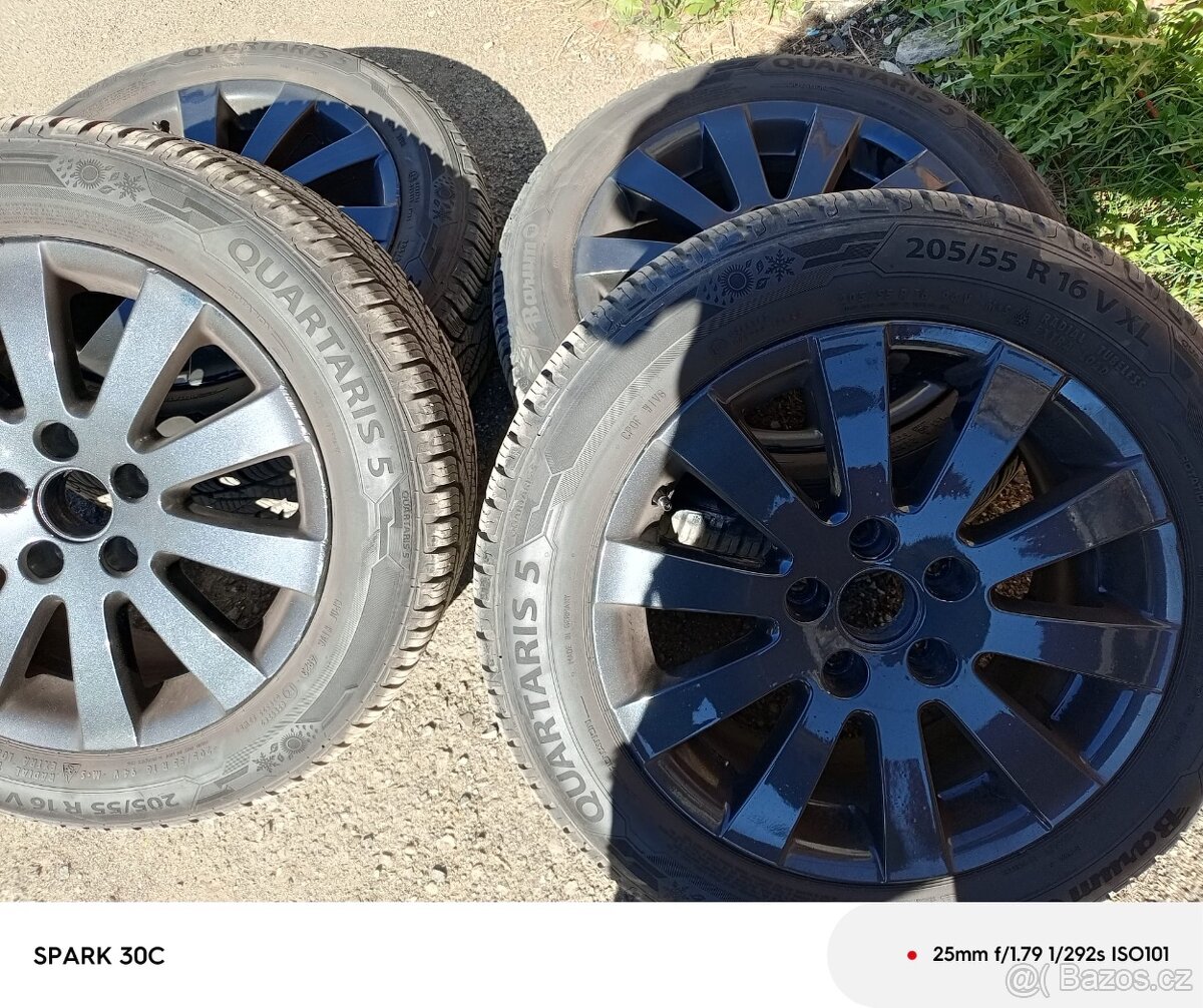 Alu kola 5x112r16 letní pneu 205/55r16 - [8.4. 2026]Prodám sadu alu kol VW 5x112r16 ET45, letní pneu 205/55r16 Barum Bravuris 5, vzorek 7mm. Kola vyvážená. Cena za sadu 6800,-