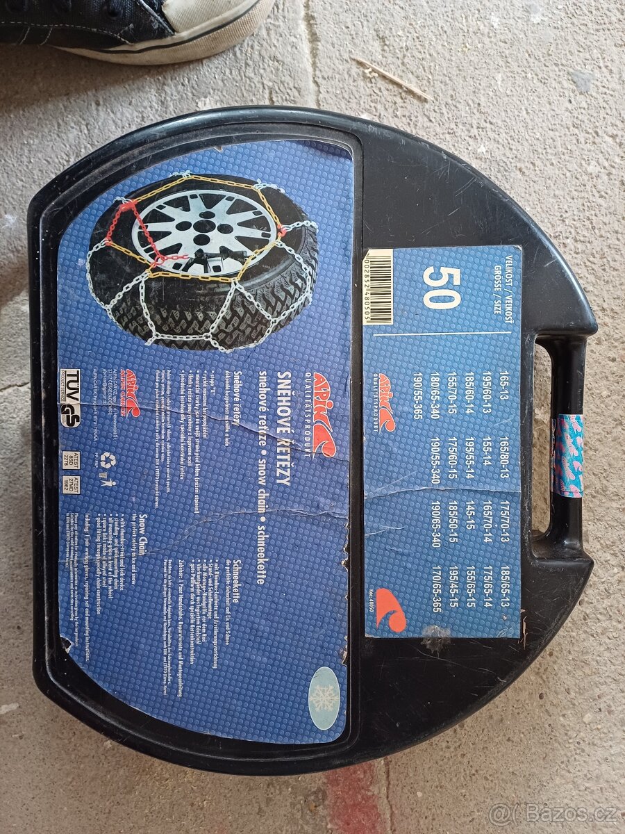 Snehove retezy - [26.4. 2026]Dvoje snehove retezy dle fotografie stitku, nejspis nebyly ani pouzite. Cena za kus 400 Kc