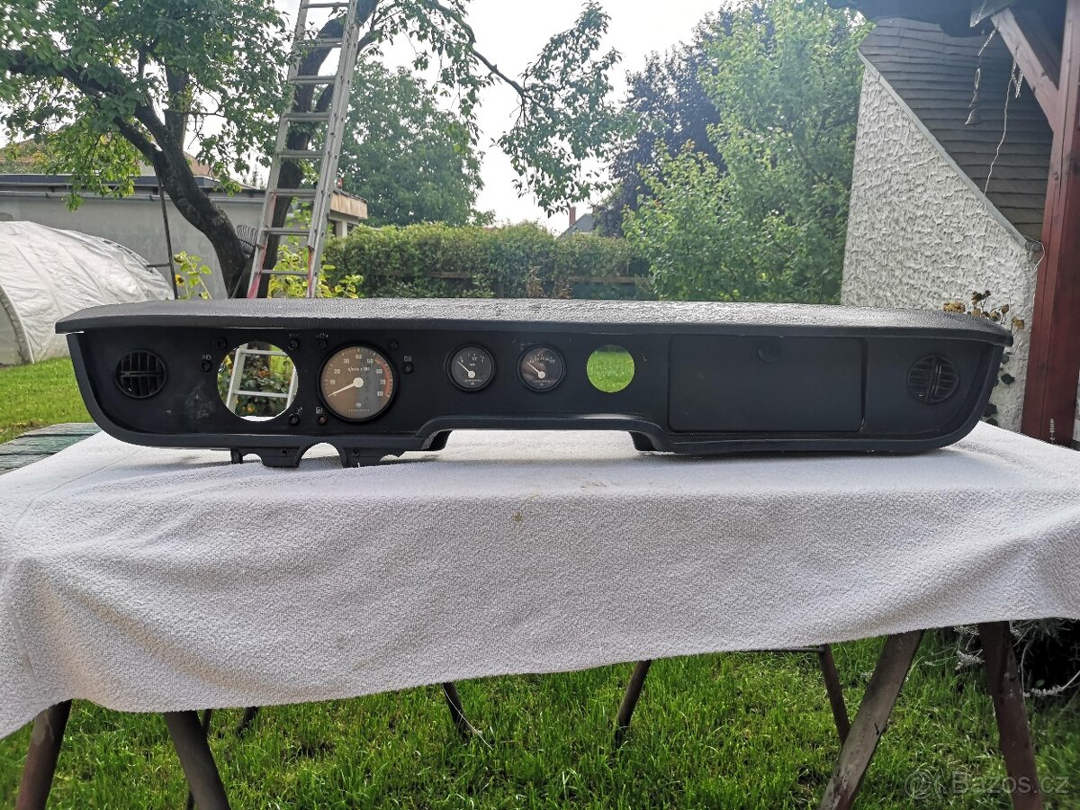 Prodám kompletní přístrojovou desku na Š 110r. Chybí pouze dva přístroje. Jinak je kompletní a ve velice slušném stavu. Vhodná na nenáročnou renovaci.