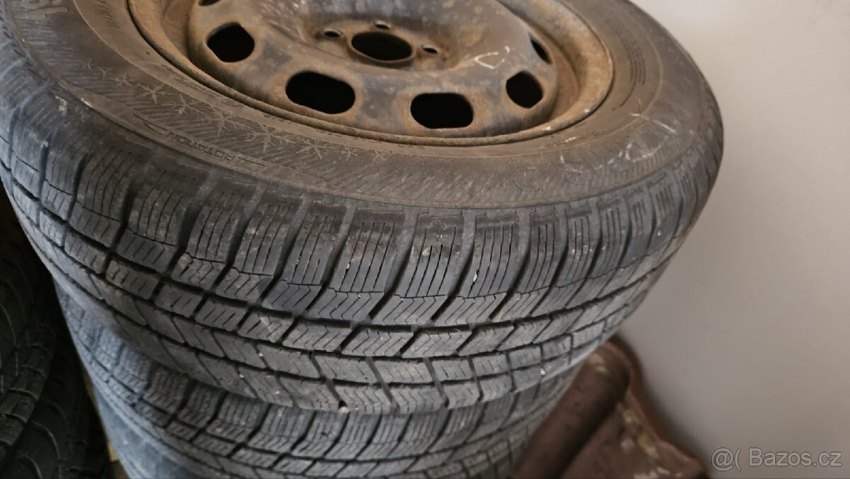 Prodám zimní pneu zn. Barum Polaris, rozměr: 195/65R15T, plechové disky. Vzorek cca 60%. Pouze osobní odběr.