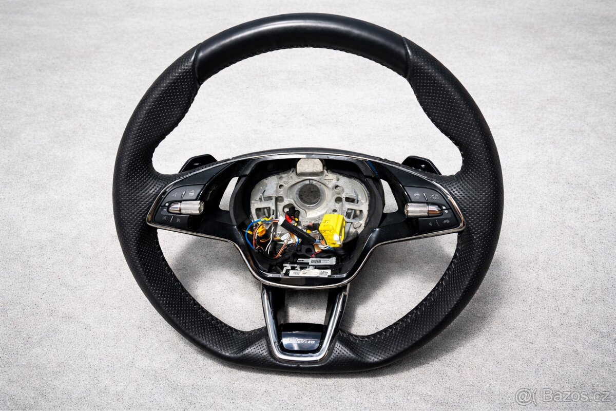 Škoda RS sportovní multifunkční volant - [27.4. 2026]Prodám sportovní zkosený kožený volant s pádly (dsg) použitý originální díl v pěkném stavu pro sportrovní modely Škoda Octavia 4, Karoq, Kodiaq, Superb