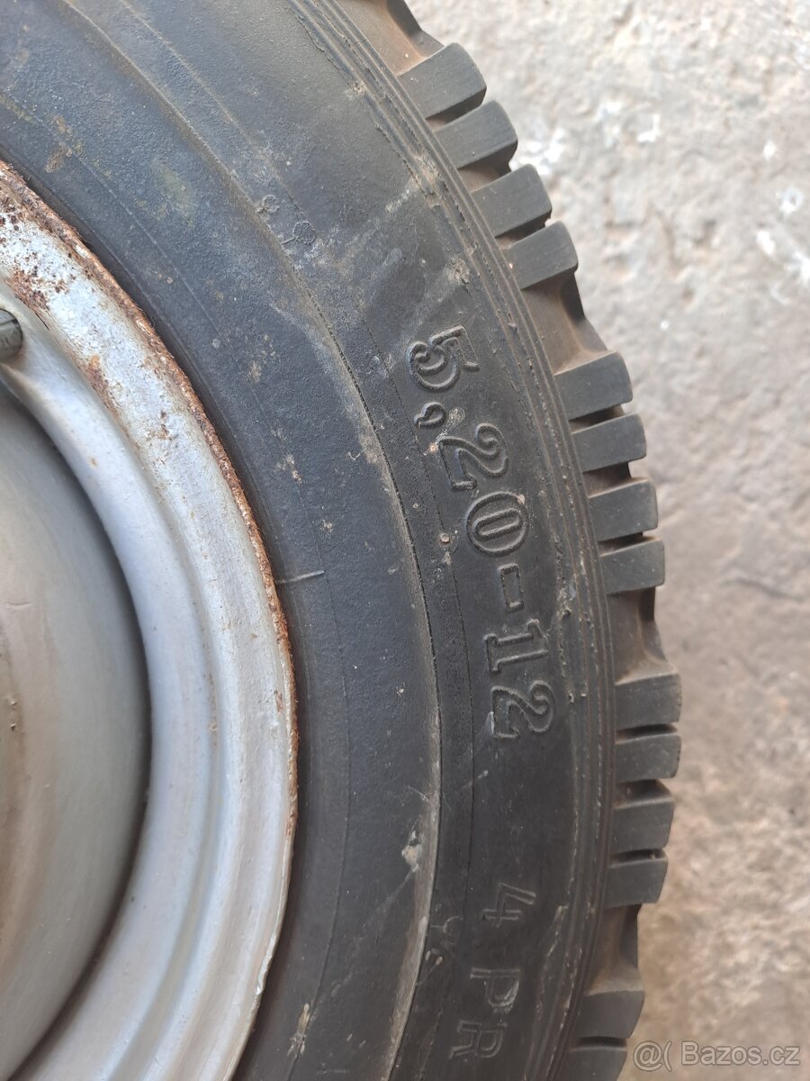 Prodám 2 pneu na diskách 5.20/12 , jedna jetá , druhá téměř nejetá. Cena za komplet 350kč.