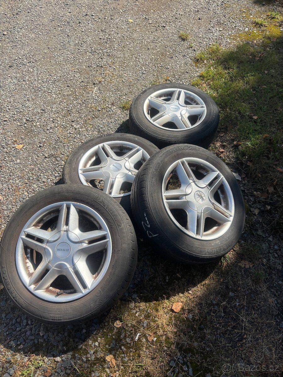 Litá kola Renault 14. Škrábance a prasklé logo krytky šroubů viz foto