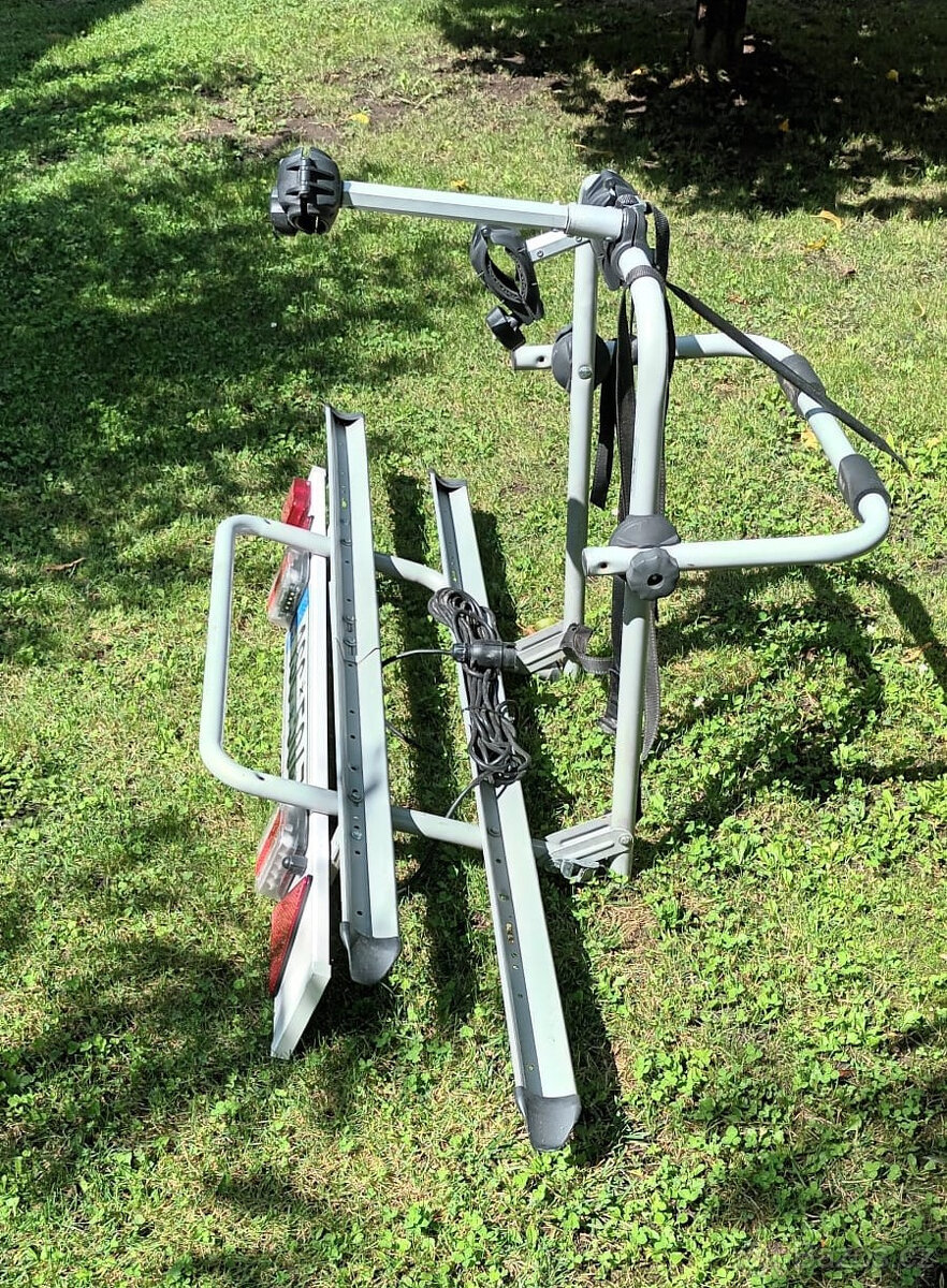 prodám nosič kol na tažné zařízení, vhodný až pro 4 kola. Nosič byl používán pouze minimálně (cca 1× ročně), je ve velmi dobrém stavu, plně funkční a bez poškození.