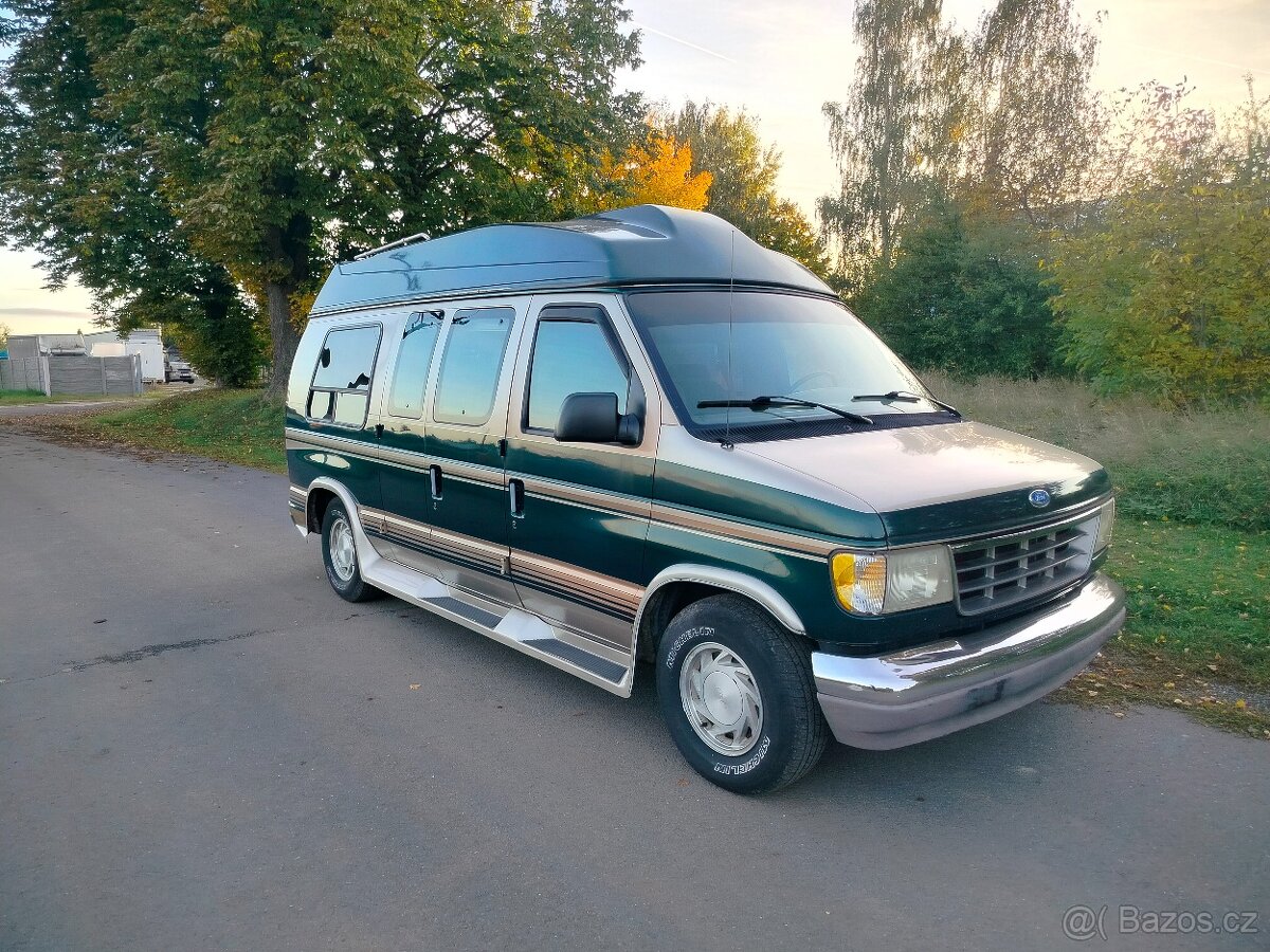 Ford Econoline E 150 z roku 1995, motor V8 s automatickou převodovkou, el. okna, el. sklápěná postel, klimatizace, plně funkční, jen lehce havar. levý zadní roh