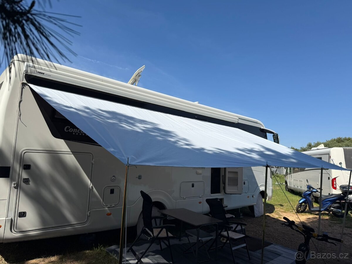 Predám prístrešok ku karavanu ktorý sa zasúva do kedrovej lišty alebo markízy ako predĺženie, prístrešok je nový, rozmer 6 x 3,3m, je z veľmi odolného nepremokavého materiálu z ktorého sa šijú plachty na lode, je ľahký a veľmi pevný. Cena 7300,- Kč.