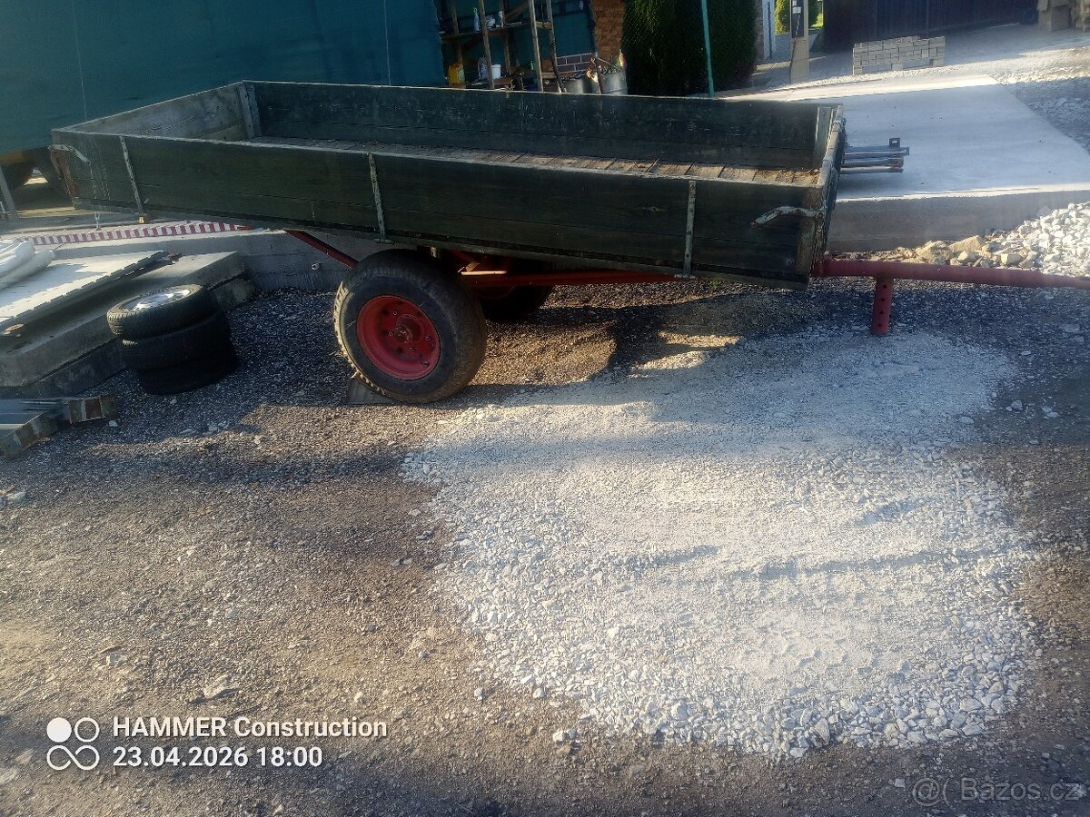 Prodám zachovalý přívěs, vlek za malotraktor, délka 3,5m, šíře 1,5m, bez TP.