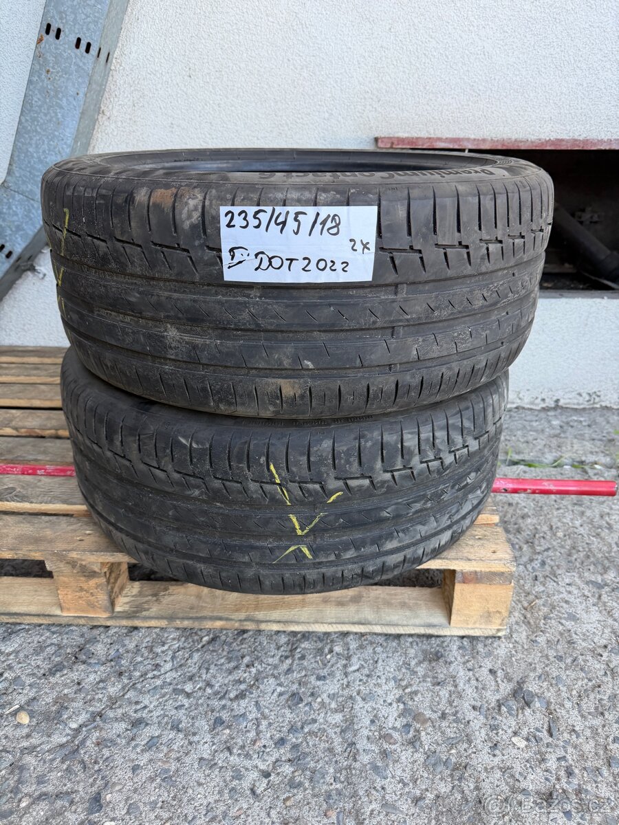 Letní pneumatika 235/45/18 Continental - [27.4. 2026]Letní pneumatika 235/45 R18 Continental PremiumContact 6, DOT4623, JENOM JEDEN KUS. Cena je 1500,-Kč.