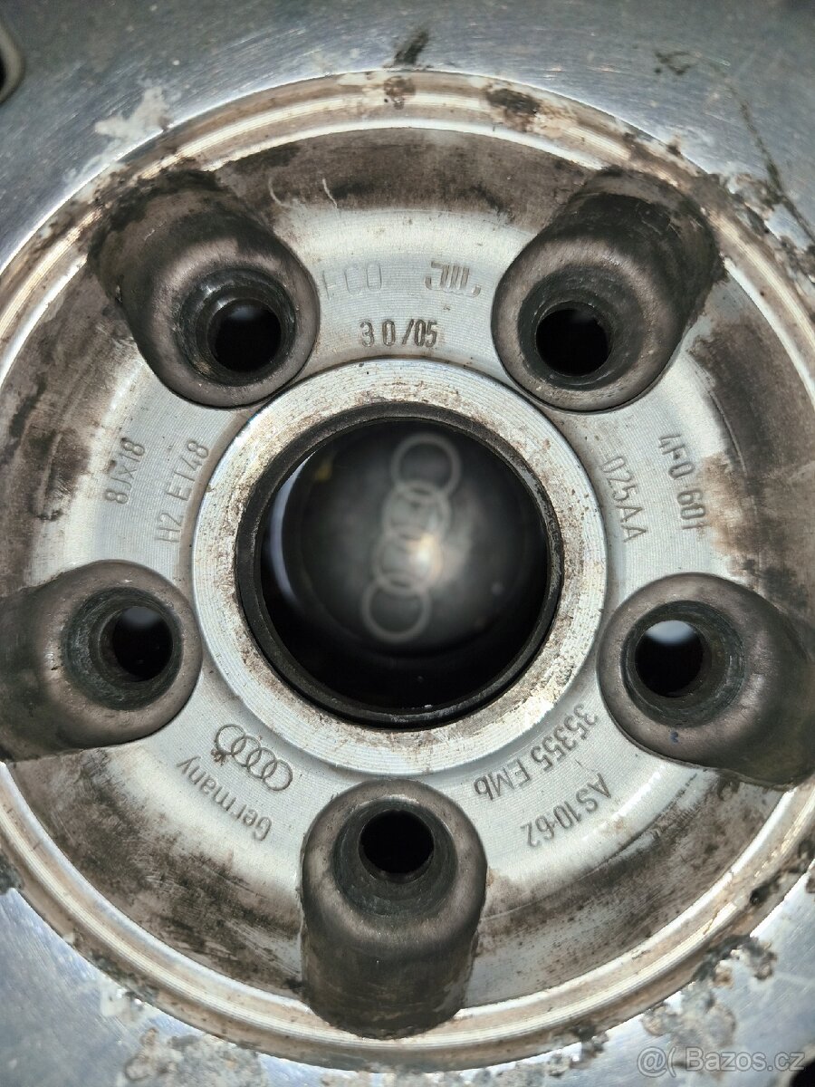 Prodám originální kované disky Audi, 5x112mm, 8Jx18", ET48. Mají snímače tlaku. Je na nich práce, stav dle foto.