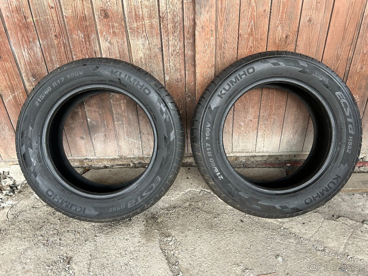 Prodám gumy 215/60/17. Letní vzorek 2x5,8mm. Možnost kompletního přezutí. Likvidace vašich starých pneu zdarma.