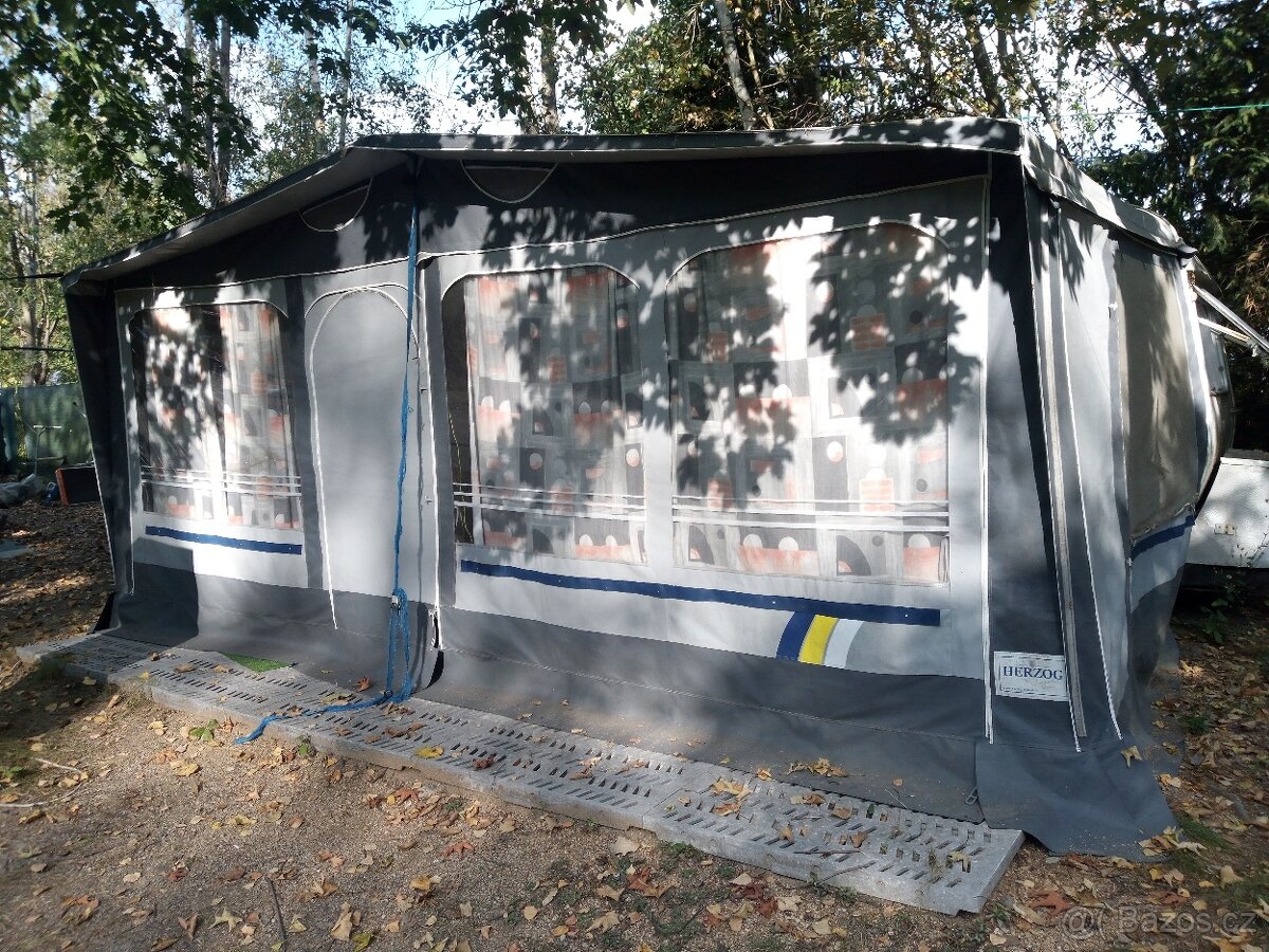 kompletní stanová předsíň Gerjak ke karavanu - [24.4. 2026]Prodám použitou kompletní stanovou předsíň ke karavanu č. 290923. Měřeno od země k zemi - 800 cm. Stan má v ceně i přístavbu do boku, která se nemusí stavět. Kompletní stanová konstrukce, záclony, krycí plachta na podvozek karavanu na zamezení foukán ...