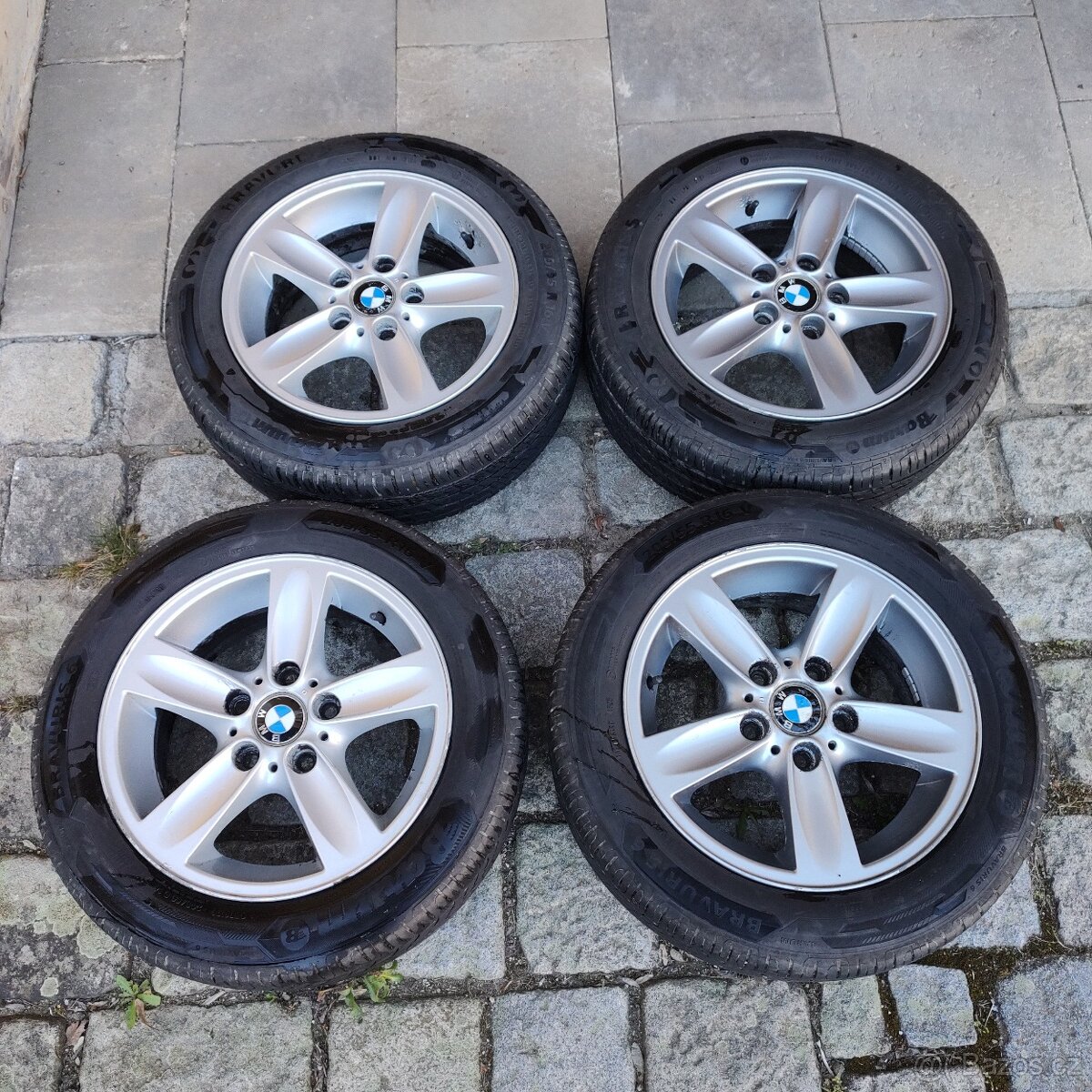 Kola s disky pro BMW E87. Disky 6,50x16 EH2. Pneu 2xBravuris 5, 2xBravuris 6, rozměry pneumatik 205/55 R16V. Bravuris 6 jeté minulý rok 2 měsíce, vzorek 6-7 mm. Bravuris 5 jeté necelé 2 sezóny, vzorek 5mm. Zbyly mi po prodeji auta.
