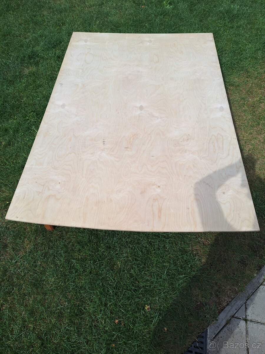 Spací vestavba, na míru. Deska s nohama na pantu aby nezavazelo při skladování. Bylo v caravelle long za druhou řadou sedaček. Rozměr desky 185×125. Prostor pod deskou 40-35.
