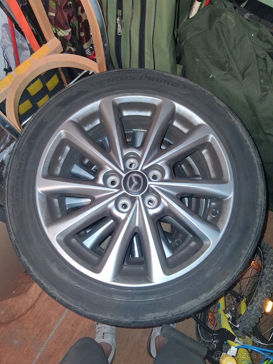 Prodám sadu ALU kol, R17, MAZDA, rozteč 5 x 114,3, pneu Hankook 215, 50, R17.