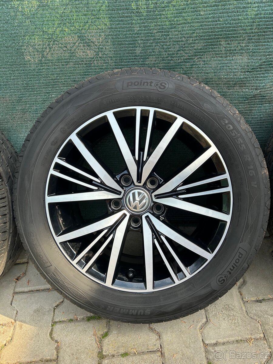 Prodám originální sadu alu kol VW Golf, 5x112, 6,5Jx16, ET 46. Letní pneumatiky PointS 205/55/16, vzorek 2x 7,5mm (DOT0925) a 2x 5,5-6mm (DOT4620). Kola jsou ve velice hezkém stavu. Vhodné na VW Golf, Škoda Octavia, Seat Leon….