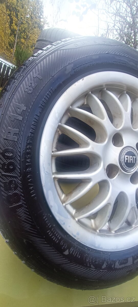 Prodám sadu alu kol, originál Fiat, obuté na letních pneu zn. Barum, R 14, 185/60.
