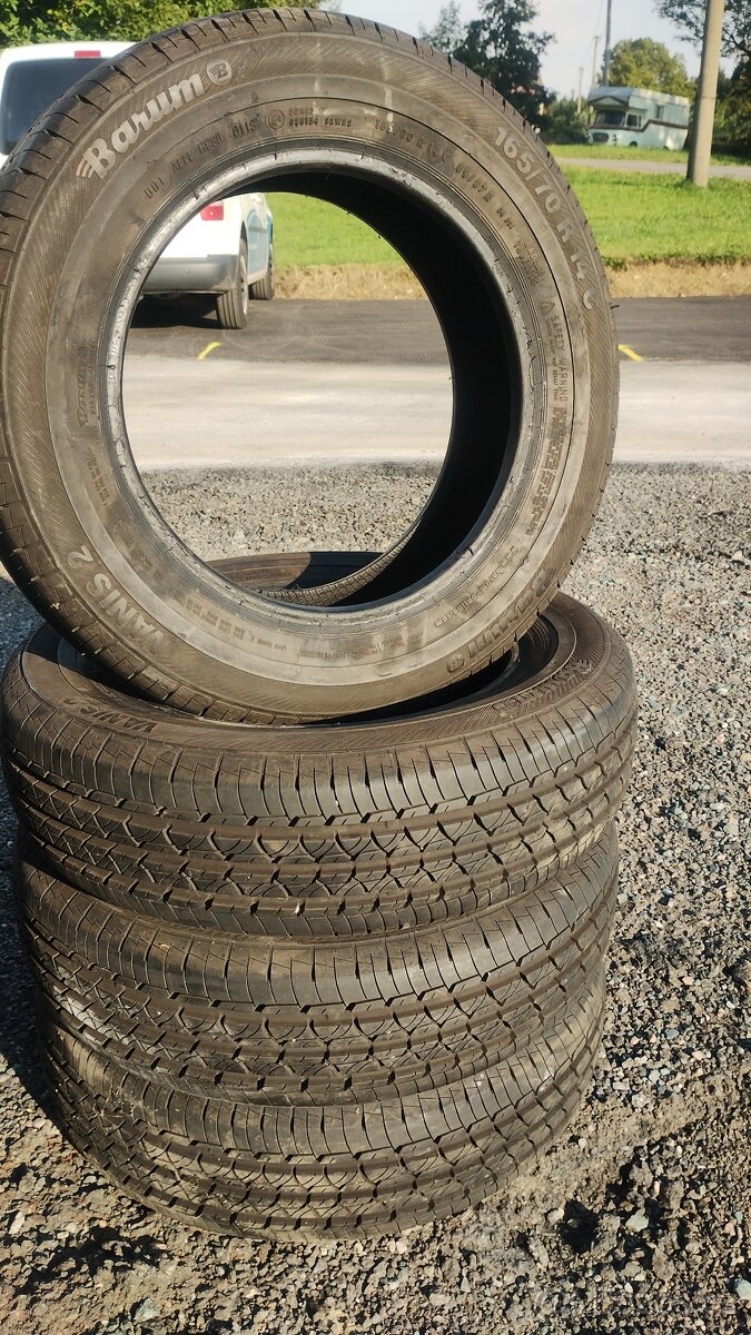 165/70 R14c,zuté z vleku skoro nejeté,viz foto, cena za všechny