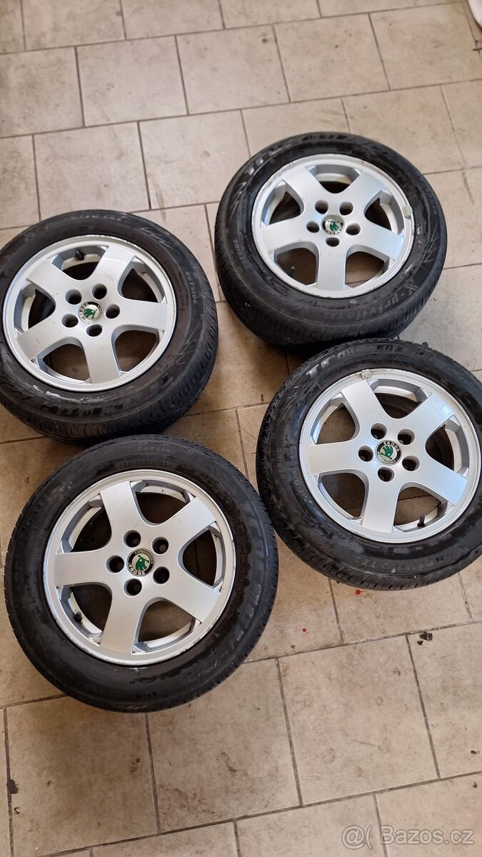 Alu disky Škoda Octavia I 195/65 R15 - [27.4. 2026]Originál škoda Octavia I, drobné nedokonalosti viz foto, letní pneu Barum Bravuris 5, 2ks 4 mm rok 23, 2ks na dojetí rok 19.