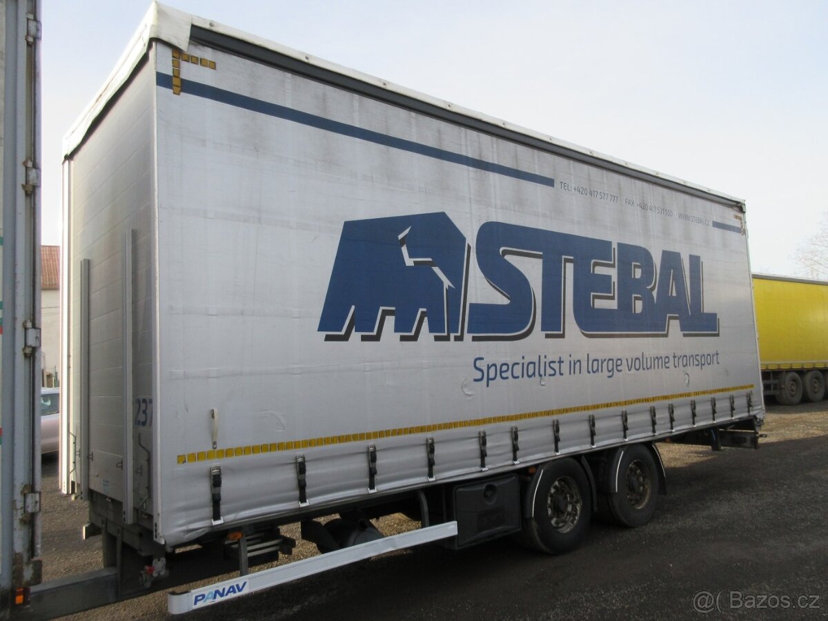Panav TV018M, r.v. 03/2018, STK do 12/2026, ABS, nápravy BPW, kotoučové brzdy, celková váha 18000 kg, nosnost 13500 kg, rozměry ložné plochy 8300x2500x3000mm, pneu 445/45 R 19.5. Cena + DPH.