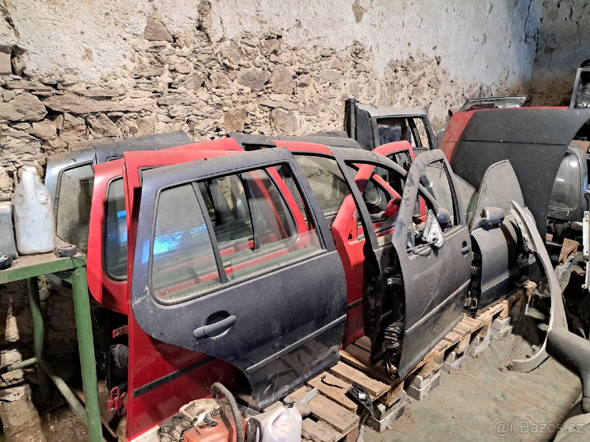 Dva vraky s motory 1.6 k rozebrání, dveře červená základní, modrá a tmavě šedá metalíza, kódy barev neznám.