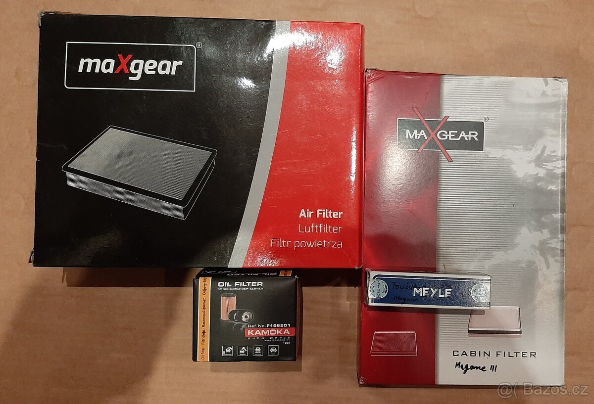 filtr olejový – nový 80,-, pylový (kabinový) – nový 200,-, vzduchový – lehce použitý 50,-,