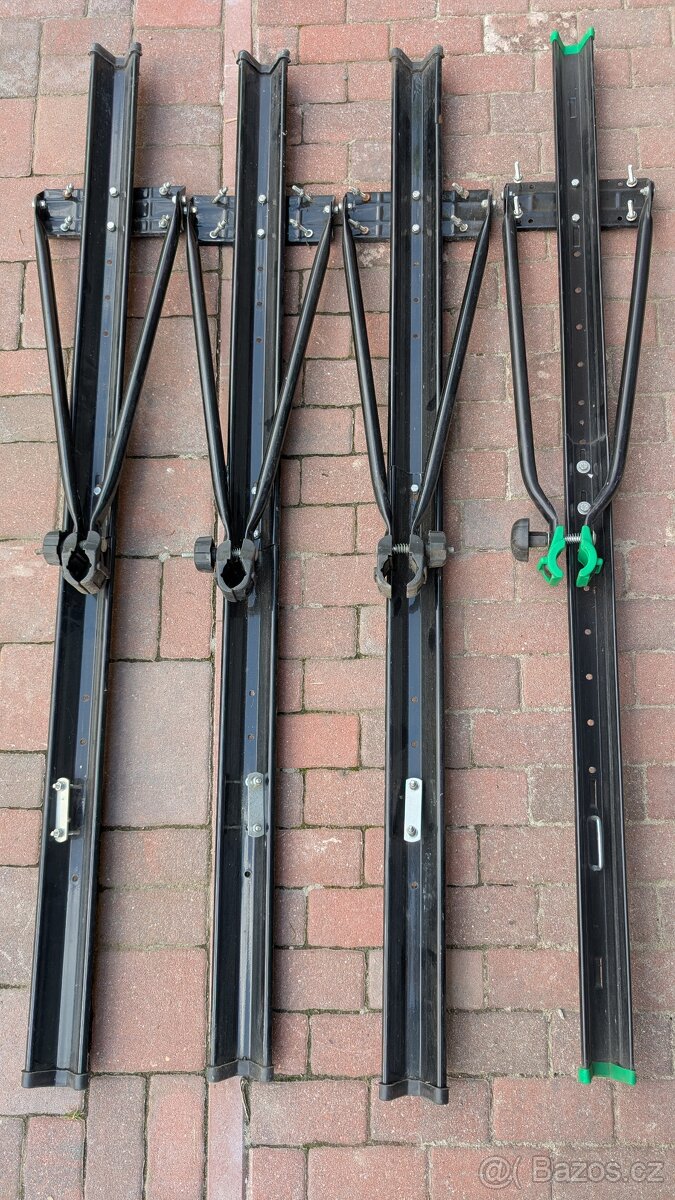 Prodám 4 kusy nosičů kol včetně úchytů na příčníky. Cena za kus samostatně 300,- Kč.