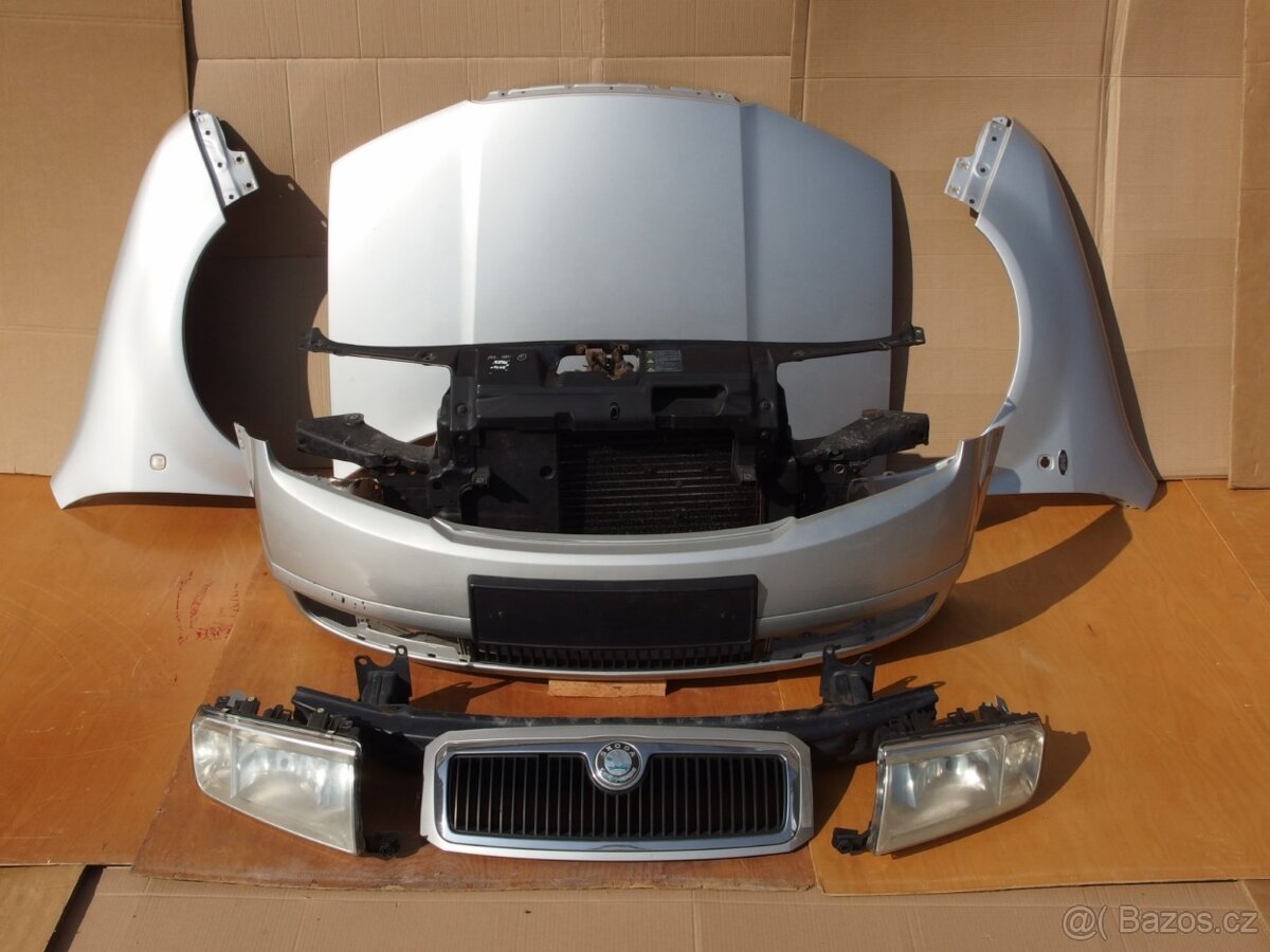 Předek Škoda Fabia I - [28.4. 2026]Nabízím kompletní předek Škoda Fabia I. Součástí sady je přední nárazník, výztuha, lehce poškozená chladičová stěna (vrchní díl, vodní chladič, ventilátor chladiče), přední světla, kapota, čelní maska a blatníky. Barva oranžová cayenne metalíza, čísl ...