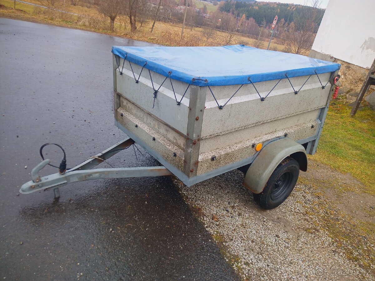 Prodám přívěsný vozík zn. Stema r. v 2002 dvojí sajtny, plachta. Dohoda je